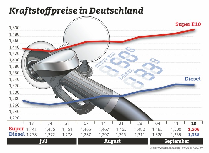 ADAC um 0,6 Cent auf durchschnittlich 1,506 Euro. Diesel verbilligte