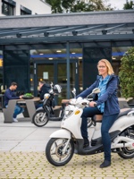 Weil es zeitgemäß und zukunftsweisend ist, sich mit emissionsfreier Mobilität zu beschäftigen. Außerdem sind unsere E-Roller sehr kosteneffizient und stärken das grüne Denken im Unternehmen. Was wiederum auf das Markenimage einzahlt. Die Fahrzeuge sind total flexibel im Einsatz, können ohne lange Einweisung gefahren werden, machen Spaß und schaffen zudem neue Aufmerksamkeit nach innen wie nach außen. Im Vergleich zu Elektroautos verbrauchen Elektroroller viel weniger Strom, sorgen noch mehr für Klimaschutz und für die Reduktion von Emissionen. Zudem reduzieren sie Lärm. Sie sind aus unserer Sicht die preiswerte Alternative zum Auto als Botenfahrzeug. Auch sind sie sehr viel wendiger im Straßenverkehr und werden in der Regel sehr schnell vom Team akzeptiert und geliebt.