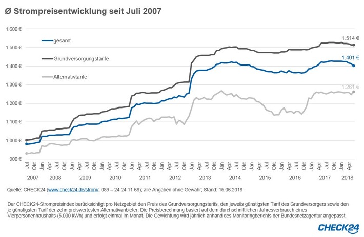 Der durchschnittliche Strompreis ist im ersten Halbjahr 2018 um