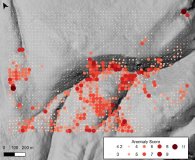 Abbildung 1 zeigt die Verteilung der Anomaliewerte über das Bodenuntersuchungsraster. Zur Bewertung der Anomalien wandte das Unternehmen ein zusammengesetztes Anomaliebewertungssystem an, das auf zwölf unabhängigen geochemischen Kriterien basiert, einschließlich Schwellenwerte für einzelne Elemente und Verhältnisse von Elementen. Die Werte wurden für alle 2.040 Proben vom B-Horizont berechnet, von denen 1.222 keine oder nur eine einzige Anomalie aufwiesen und als Hintergrundwerte erachtet wurden. Die übrigen 818 Proben wiesen zwei oder mehr Anomalien auf, mit zusammengesetzten Werten zwischen 2 und 11. Zwei Proben – weniger als 0,1 % des Datensatzes – erreichten einen Höchstwert von 11, während 128 Proben (6,3 %) Werte von 7 oder höher aufwiesen. Ein Großteil der Proben mit hohen Werten war auf die unmittelbare Umgebung des Vorkommens Main konzentriert, wobei weitere Anhäufungen den Verläufen an anderen Stellen des Rasters folgten.