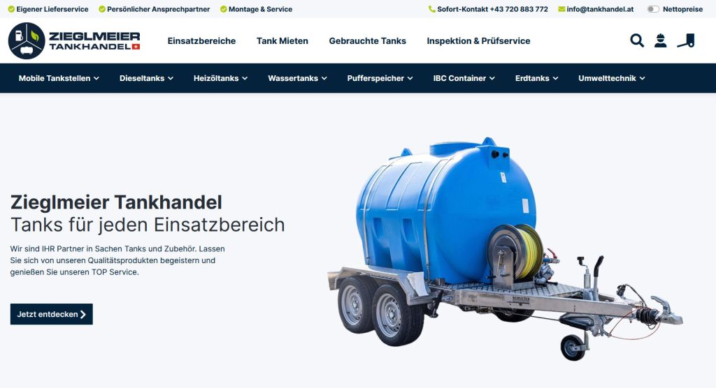 Deutschlands Top Experte für Tanks und alles rund um Umwelttechnik präsentiert seine neue Website: Tankhandel CH…