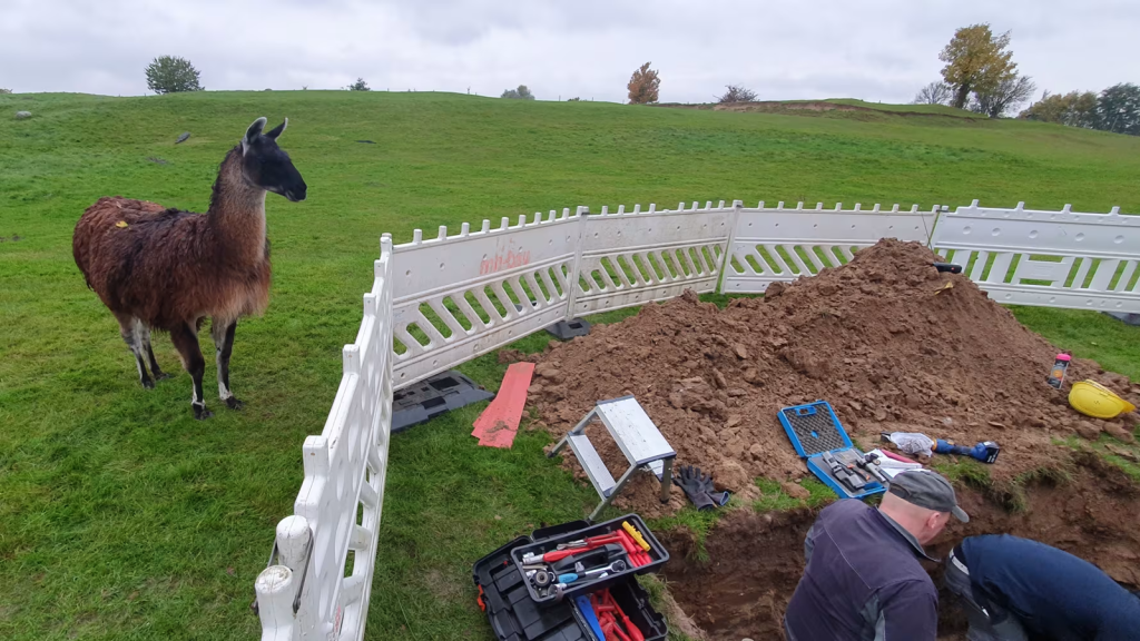 Mitten im Alpaka-Gehege: Techniker von HanseWerk-Tochter SH Netz reparieren Stromleitung im Zoo von Grömitz