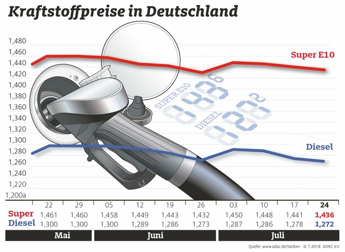wurde damit seit Dienstag, 3. Juli, um 1,4 bzw. 1,5 Cent billiger.
