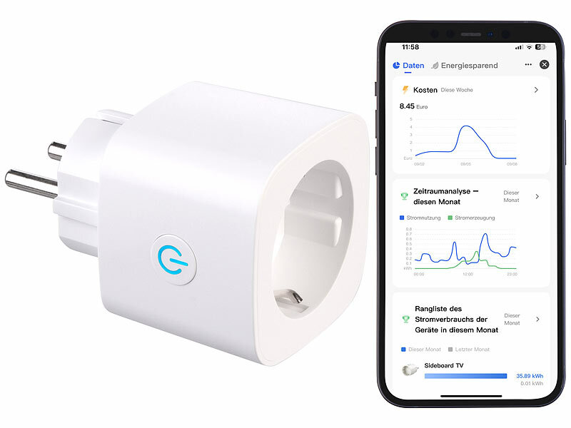 Sind alle Elektrogeräte sowie das Balkonkraftwerk mit dieser WLAN-Steckdose ausgestattet, stellt die App dann die Stromerzeugung und den Stromverbrauch in einem übersichtlichen Verlaufsgraphen gegenüber. So erkennt man Optimierungsmöglichkeiten beim Verbrauch, um den selbst erzeugten Strom bestmöglich zu nutzen.