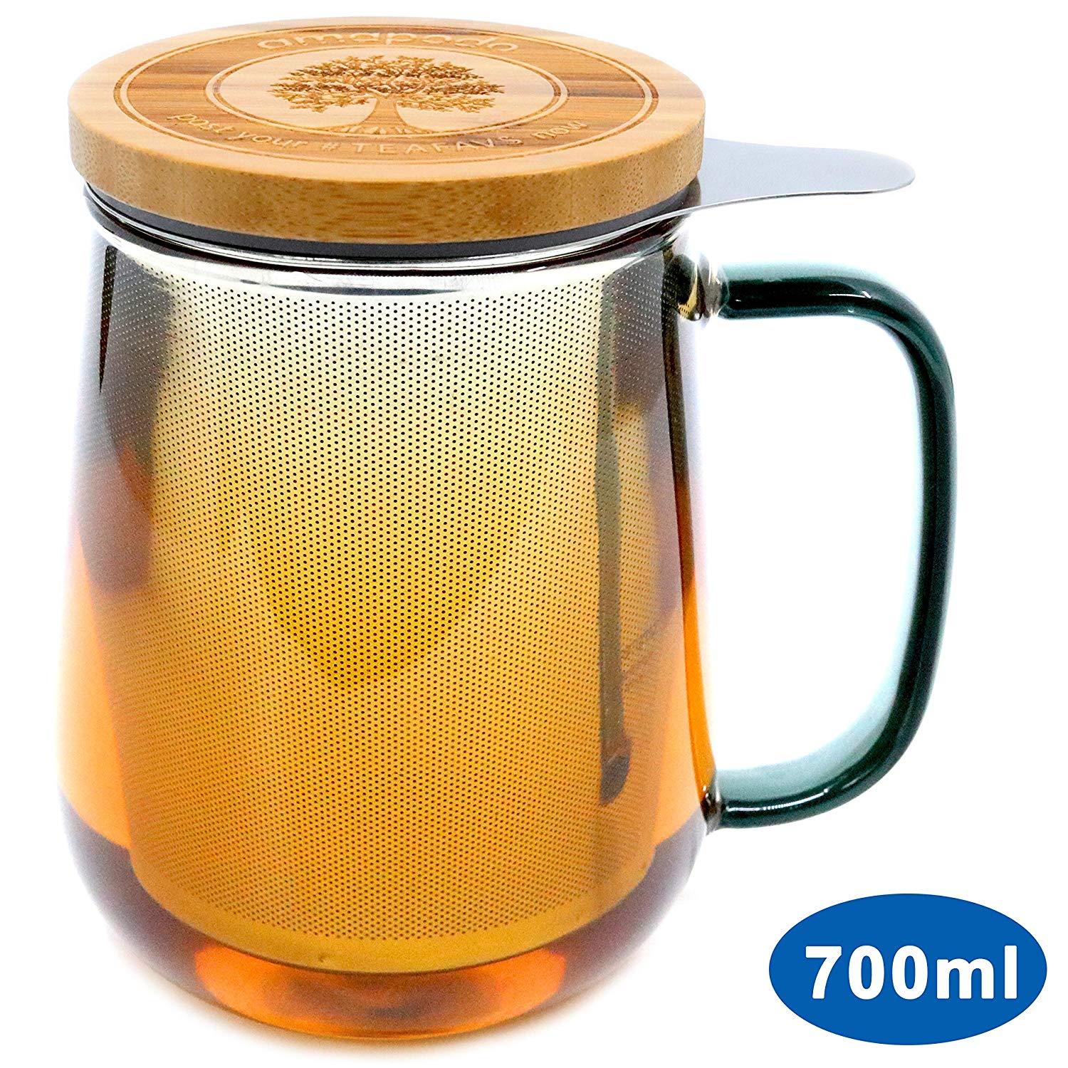 Ein Teesieb aus Edelstahl, das sich einzeln oder kombiniert für die verschiedensten Sorten eignet, ist Teil des Konzepts. Deshalb genügt unterwegs etwas Heißwasser, um sich kurz darauf an wohltuenden Aromen zu erfreuen. Dank der mundgerechten Öffnung, mit der das gefertigte Gefäß ausgestattet ist, kannst du direkt aus dem Teeglas 700 ml trinken. Mit Blick auf das Fassungsvermögen spricht aber auch nichts dagegen, weitere Teeliebhaber an den mehr als durchschnittlich angebotenen Millilitern teilhaben zu lassen.