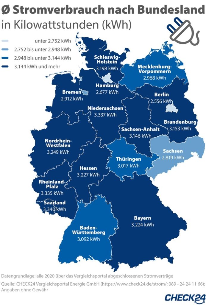 – Stromverbrauch im Saarland, in Rheinland-Pfalz und Niedersachsen am höchsten – Niedrigster Strombedarf in Berlin, dort…