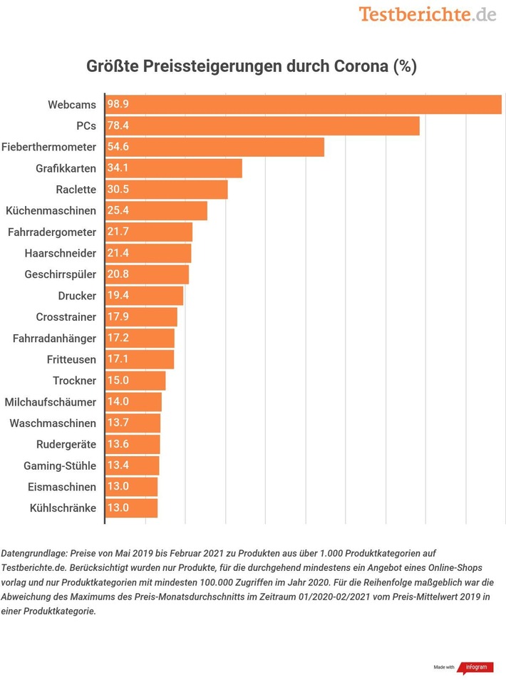 Studie: Preise durch Corona deutlich gestiegen – Testberichte.de hat Daten in über 1.000 Produktkategorien ausgewertet –…