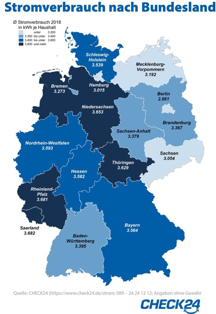 – Deutscher Durchschnittshaushalt verbraucht 3.381 kWh Strom pro Jahr – Strombedarf im Westen durchschnittlich sechs Prozent…