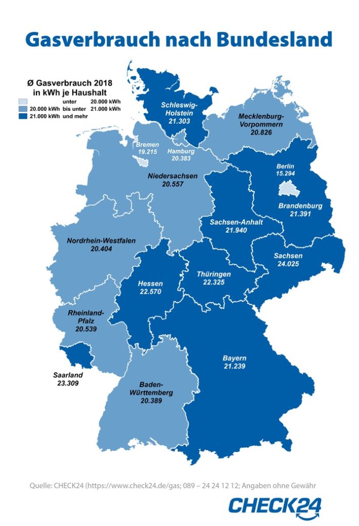 – Durchschnittlicher Gasverbrauch liegt in Deutschland bei 20.982 kWh p. a. – Ostdeutsche benötigen im Durchschnitt…
