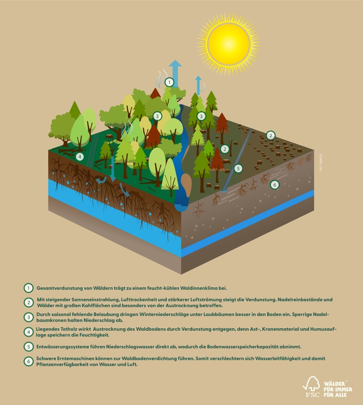 – Begleitender FSC-Artikel zur Pressemitteilung: Nachhaltige Waldwirtschaft – mit FSC-Standard gegen Trockenheit im Wald (https://www.fsc-deutschland.de/wirkungen/publikationen/fsc-standard-adressiert-schutz-vor-trockenheit/)
